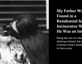 At about half past eleven, the night watchman pulled his car around the back of St. Joseph’s Mission, one of the Indian residential schools in British Columbia where my family was sent to unlearn our Indian ways. The four-storey building was all white and right angles. Unadorned, save for a big cross looming over the entrance and blue-green trim that, from a distance, made the campus look like a hunk of mouldy cheese plopped in the middle of the valley.