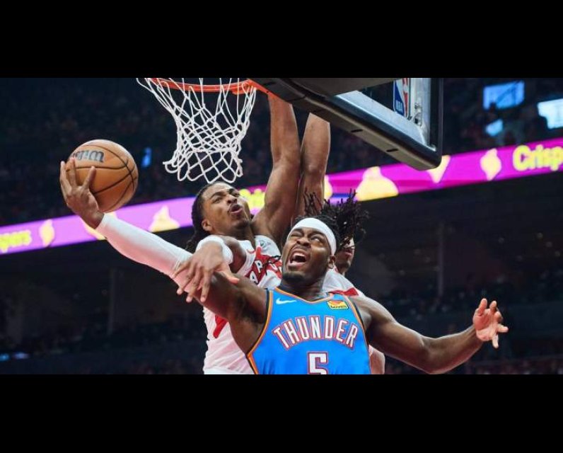 Cason Wallace led all scorers with 27 points as the Oklahoma City Thunder withstood a late charge to beat the Toronto Raptors 116-107 on Tuesday.