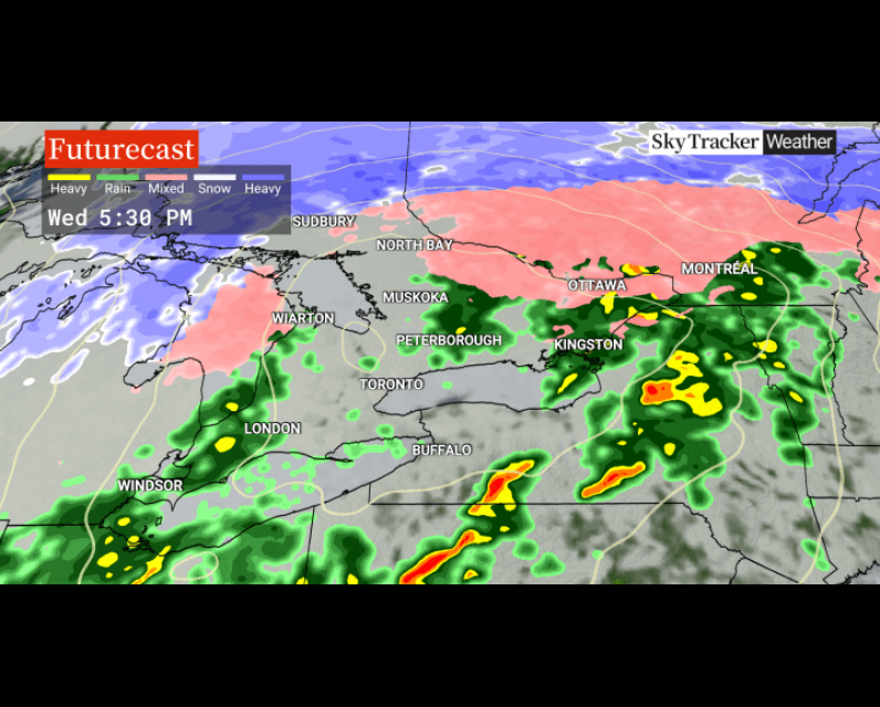 Environment Canada says Ottawa, Gatineau, Montreal and Québec City may see 20 to 40 millimetres of freezing rain over a potential 24-hour period.
