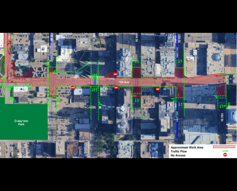 In a release, the City of Edmonton says the work on 102 Avenue will happen in phases, with the first phase expected to begin on March 16 and lasting approximately 20 weeks.