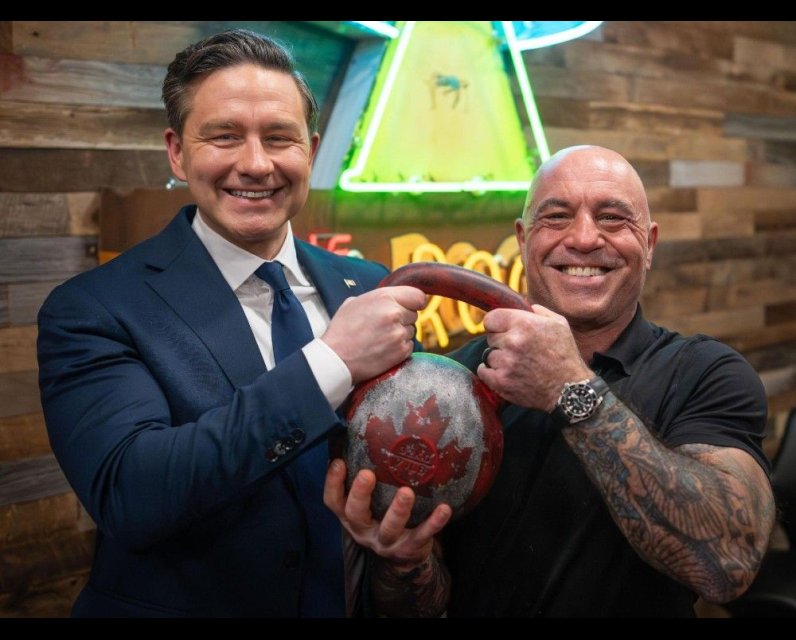 “Fought for Canadian workers and Canadian interests on the world’s biggest podcast,” Poilievre captioned a photo of him and the podcaster hoisting a 71-pound kettlebell adorned in the Canadian flag at his studio in Austin, Texas.