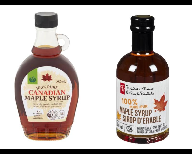 Meanwhile, Irrésistible Amber Maple Syrup retails at $2.40 per 100 ml in Food Basics; 100% Pure Panache Maple Syrup is sold for $2.66 per 100 ml at FreshCo; President’s Choice 100% Pure Maple Syrup is priced at $2.75 per 100 ml in No Frills; and Acadian Maple Pure Maple Syrup retails at $2.80 per 100 ml in Sobeys.